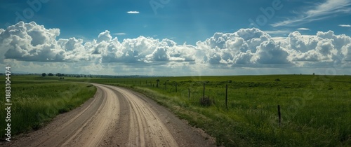 Fototapeta premium Summer day with a dramatic dirt road scene
