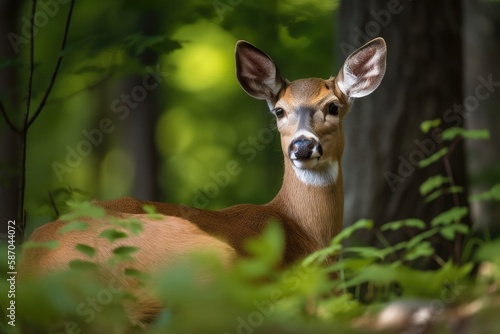 Fototapeta premium Summer doe of the white tailed deer (Odocoileus virginianus). Generative AI