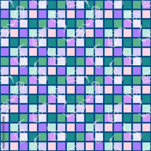 © Tetiana, Fototapeta premium Summer drink seamless cocktails cartoon ice pattern for wrapping paper