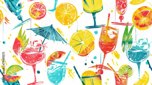 © Fomo Creative, Fototapeta premium Summer Drinks. Vibrant Cocktails with Lime on a White Background