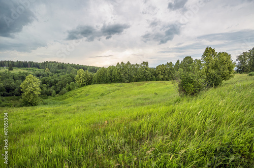 Fototapeta premium Summer field under gloomy sky