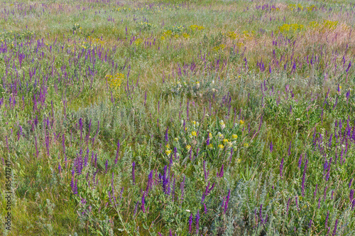 © Yuri Kravchenko, Naklejka premium Summer field with wild sage flowers - outdoor natural drugstore