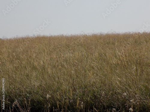 Obraz premium Summer. Fields, grass, meadows. High blue summer sky. Beautiful summer...