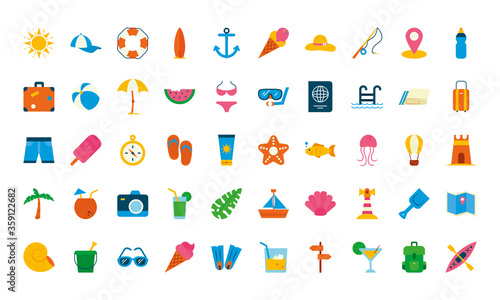 Fototapeta premium Summer flat style icon set vector design