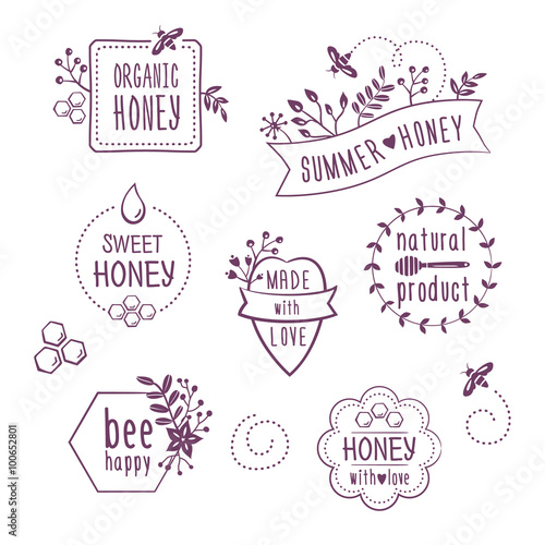 Fototapeta premium Summer floral honey labels, badges, organic honey logos