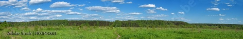© Elzeva, Obraz premium summer forest and blue cloudy sky panoramic