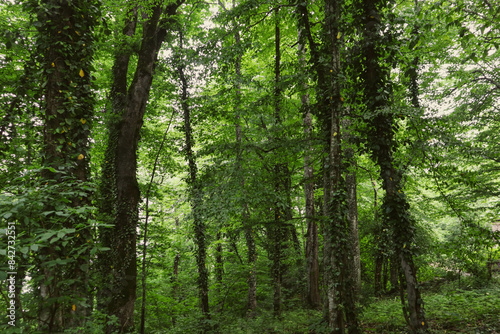 © ImagineStorm, Fototapeta premium Summer forest. Hiking in the mountains, green forest.