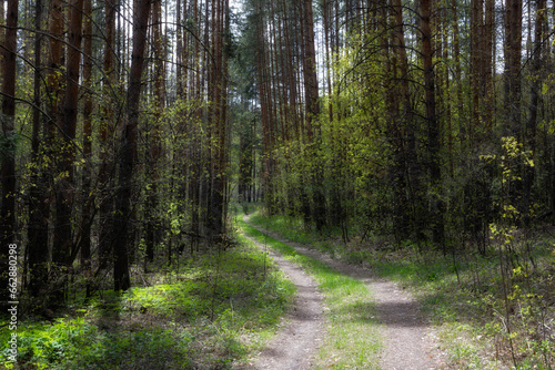 Obraz premium Summer forest landscape with a road