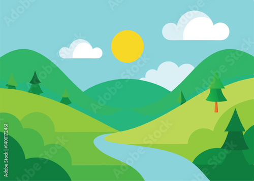 © Promela Rani, Fototapeta premium summer forest landscape with trees in sun beam and