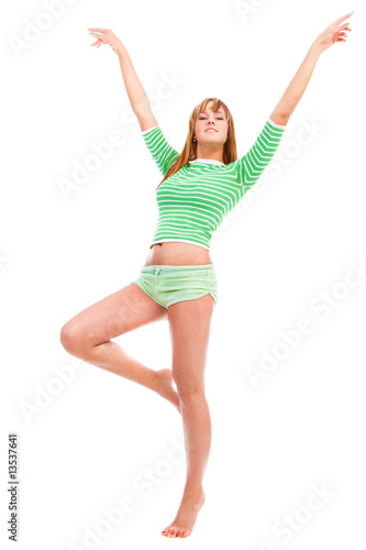 © mihhailov, Fototapeta premium Summer girl in green top on isolated white