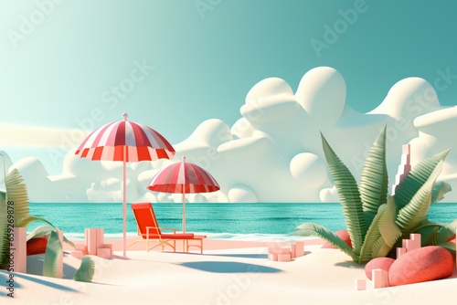 © Tarun, Obraz premium Summer graphic illustration with chairs on the beach
