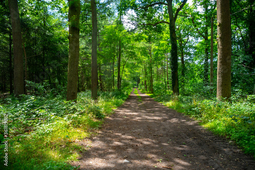 © barmalini, Fototapeta premium Summer hiking in old oak forest with large trees