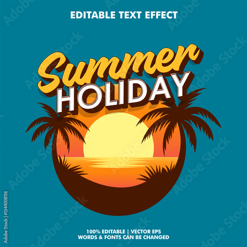 © Memet, Naklejka premium Summer holiday editable text effect with summer background