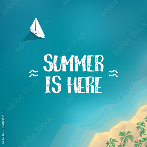 Obraz premium Summer holiday poster, banner template with yacht in the ocean and sandy...