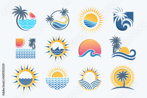 © su, Obraz premium Summer holidays logo. Summer beach, vacation, travel, tropical paradise emblems. Vector illustration