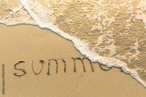 Fototapeta premium Summer - inscription on sand beach with the soft wave.