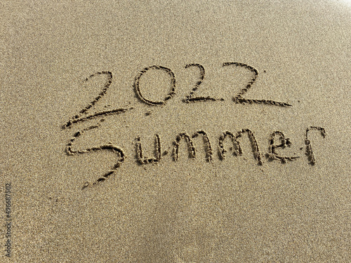 Fototapeta premium 2022 summer is coming , summer writing on the beach