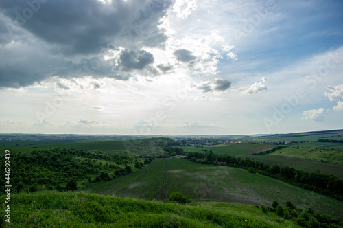 © onyx124, Fototapeta premium Summer landscape and white clouds over green fields