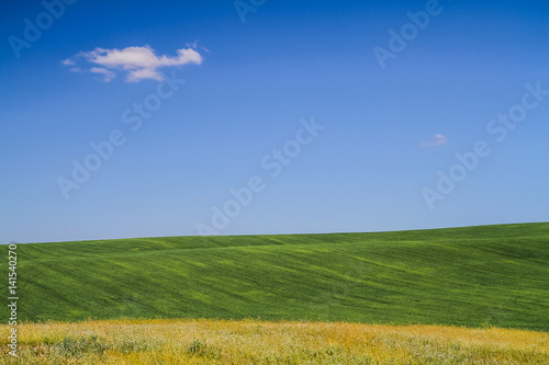 © Irina, Naklejka premium Summer Landscape background. Field and hills in Ukraine