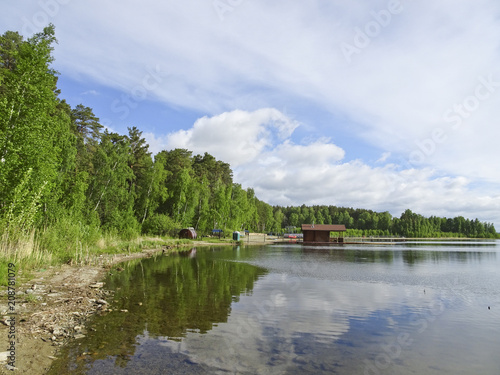 © ss404045, Obraz premium Summer landscape: blue lake on a Sunny day and sky with feathery clouds