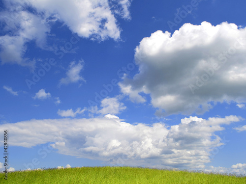 © Avantgarde, Fototapeta premium Summer landscape clouds green grass hill