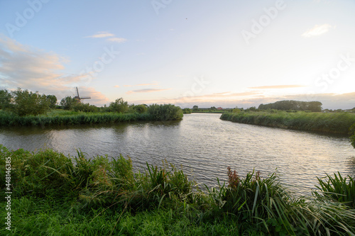 Fototapeta premium Summer landscape during sunset with the traditional dutch windmill the 't Hoog- en Groenland.