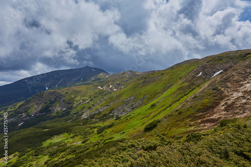 © Ryzhkov Oleksandr, Fototapeta premium Summer landscape in mountains and the dark blue sky