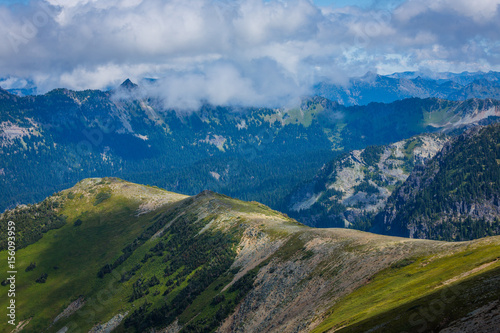 Fototapeta premium Summer landscape in mountains. View from FREMONT LOOKOUT TRAIL, Mount Rainier.