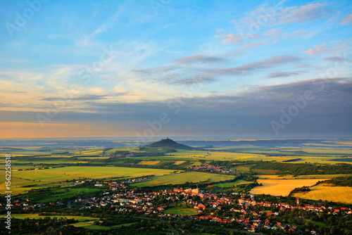 © SebVoj, Fototapeta premium Summer Landscape of Czech Town and Surrounding Farmland from Above