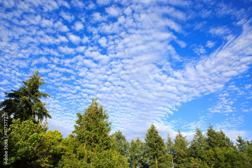 Obraz premium Summer landscape of green trees with bright clouds sky