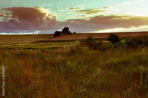 Fototapeta premium Summer landscape of meadows and fields, agricultural areas of southern Poland in Europe. fields of grain, wheat.