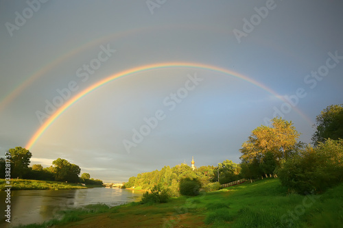 © kichigin19, Naklejka premium summer landscape with a rainbow