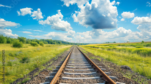 © mattegg, Fototapeta premium Summer Landscape with Empty Railway Tracks