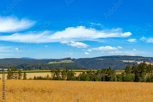 © Sergey Fedoskin, Obraz premium Summer landscape with fields and blue sky