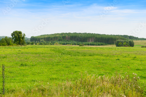 Fototapeta premium Summer landscape with green field and forest