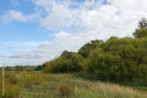 © Aleksandr, Obraz premium Summer landscape with green grass and clouds