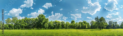 © Horsi, Obraz premium Summer Landscape with Green Trees and Blue Sky