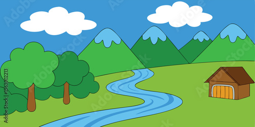 © MD DULU, Fototapeta premium Summer landscape with green trees, hills, and distant mountains under a blue sky