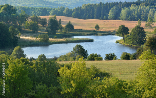 © puchan, Fototapeta premium Summer landscape with meadows and lake