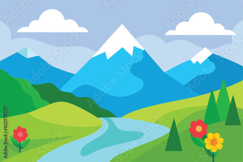 © shachin, Obraz premium summer landscape with mountains and clouds