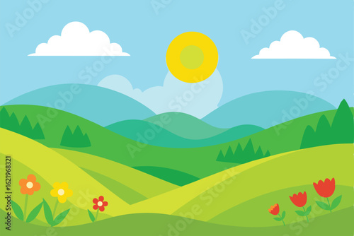 © Joy Dev, Fototapeta premium summer landscape with mountains and clouds