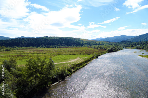 © Сергей Луговский, Obraz premium summer landscape with mountains and river