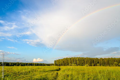 © alex_1910, Naklejka premium Summer landscape with the rainbow over the forest