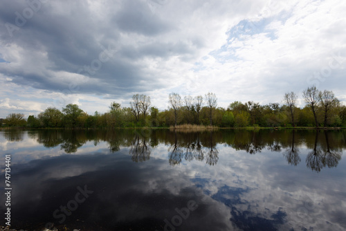 © wolf139, Fototapeta premium summer landscape with the river, forest and blue sky