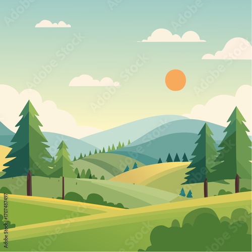 © Stefan Schurr, Obraz premium summer landscape with trees in the foreground and hills