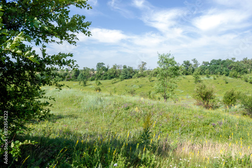 © I.H, Fototapeta premium Summer landscape with wildflowers, Meadow against a cloudy sky