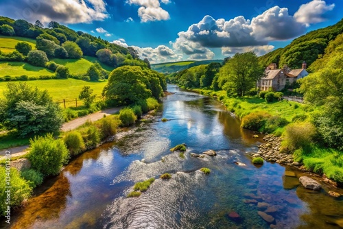 © Sirinporn, Fototapeta premium Summer Low River Torridge, Devon, England: Scenic Valley View