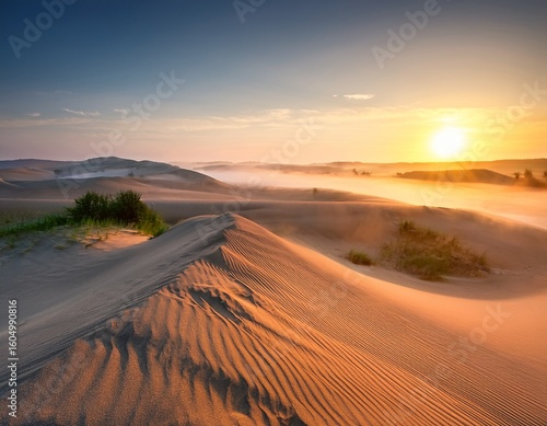 Fototapeta premium summer misty sunrise over sand dunes
