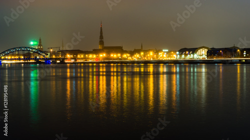 © Martins Vanags, Fototapeta premium summer night city light reflections over water