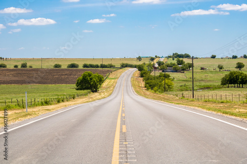 © Fang zheng, Fototapeta premium Summer or spring view of country road in Justin Texas